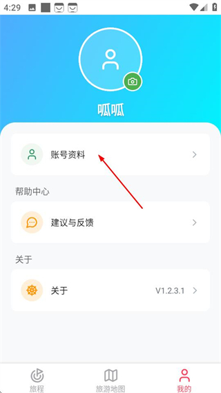 2、在個(gè)人中心頁(yè)面,點(diǎn)擊賬號(hào)資料選項(xiàng),進(jìn)入編輯賬號(hào)資料頁(yè)面。