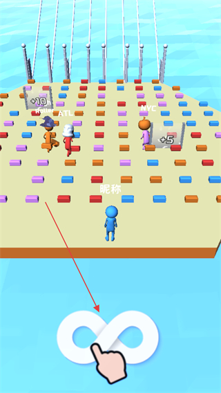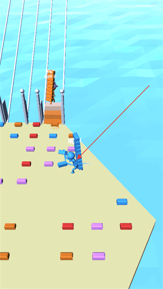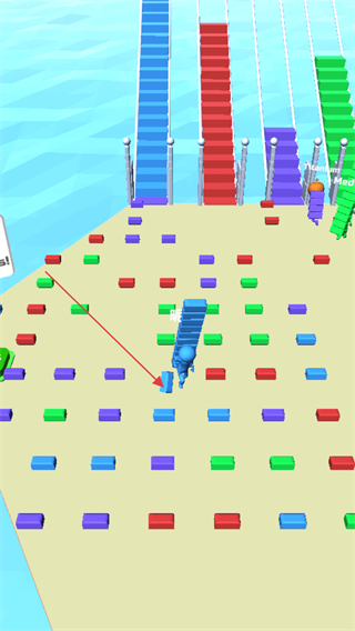 3、持續(xù)收集對應(yīng)顏色的磚塊,不斷延長梯子,向目標(biāo)區(qū)域前進(jìn)。