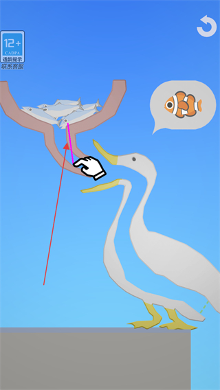 1、按界面提示點擊管道,調(diào)整其走向,使管道內(nèi)的魚可向鵜鶘方向移動。