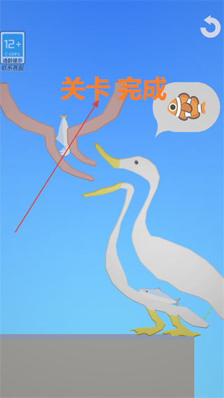 3、魚完成移動后,界面顯示關(guān)卡完成提示,本關(guān)卡通關(guān)。
