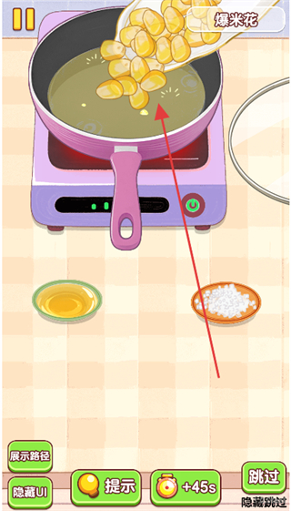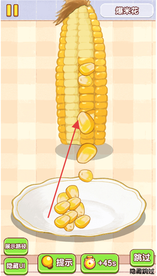 1、剝下玉米上的玉米粒,收集到盤子中,當(dāng)前關(guān)卡是爆米花。