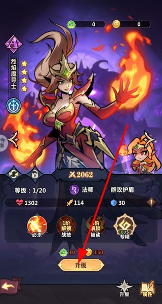 4、進(jìn)入英雄界面,消耗對應(yīng)的資源點(diǎn)擊升級按鈕,提升英雄等級,解鎖更多技能,增強(qiáng)英雄屬性。