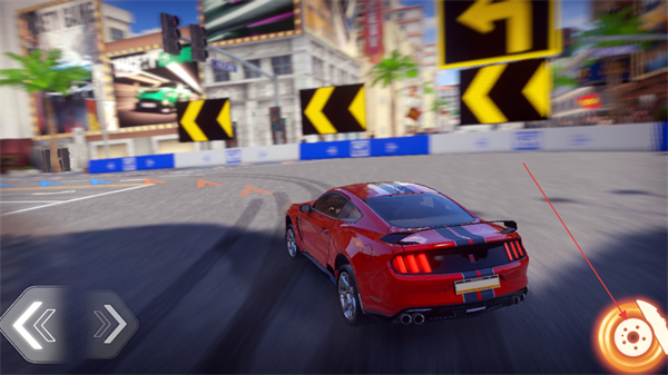 2、賽車比賽操控界面左側(cè)方向鍵控制轉(zhuǎn)向,右側(cè)剎車鍵可控制車輛減速,同時(shí)按下兩個(gè)按鈕可以進(jìn)行漂移過彎的操作。
