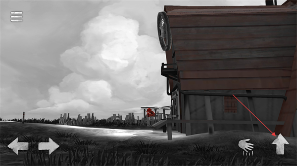 3、在當(dāng)前位置,點(diǎn)擊右下角的向上按鈕控制角色跳躍,進(jìn)入右側(cè)建筑,推進(jìn)游戲的后續(xù)進(jìn)程。