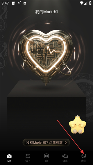 1、在Mark印首頁,點(diǎn)擊底部我的選項(xiàng),進(jìn)入個人中心頁面。
