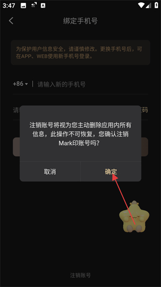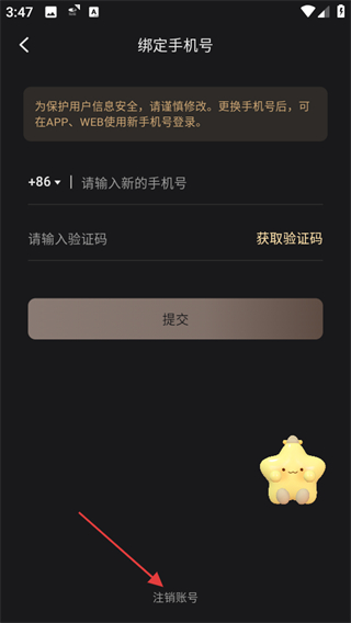 4、在綁定手機(jī)號頁面,點(diǎn)擊注銷賬號選項(xiàng),觸發(fā)確認(rèn)彈窗。
