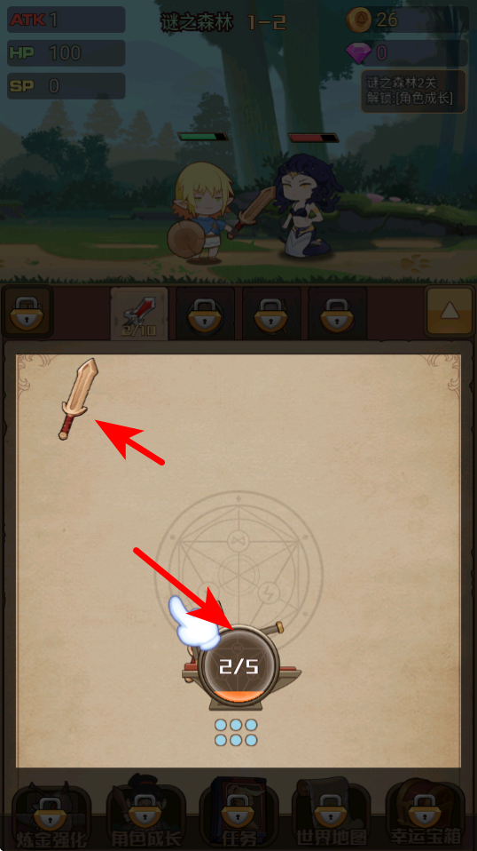 2、進(jìn)入關(guān)卡后,根據(jù)提示選擇同造型的武器如劍類道具,放入合成欄完成合成,合成后武器屬性會大幅提升,助力戰(zhàn)斗效率。