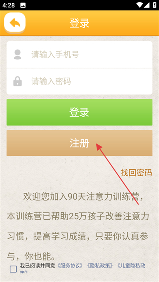 3、在登錄頁(yè)面,點(diǎn)擊注冊(cè)按鈕,進(jìn)入注冊(cè)頁(yè)面。