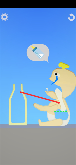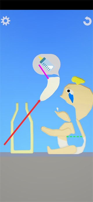 1、進(jìn)入關(guān)卡后,觀察角色需求,拖動吸管連接奶瓶與寶寶,這是滿足角色需求的基礎(chǔ)操作,準(zhǔn)確連接才能開啟物品輸送流程。