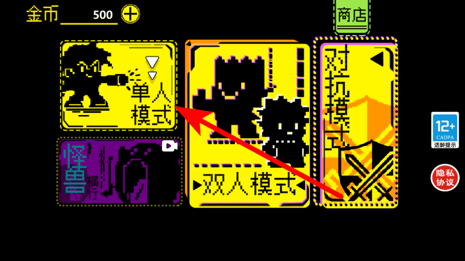 1、在主界面選擇模式點(diǎn)擊單人模式進(jìn)入單人游玩,或點(diǎn)擊雙人模式開啟雙人協(xié)作/對(duì)抗玩法。