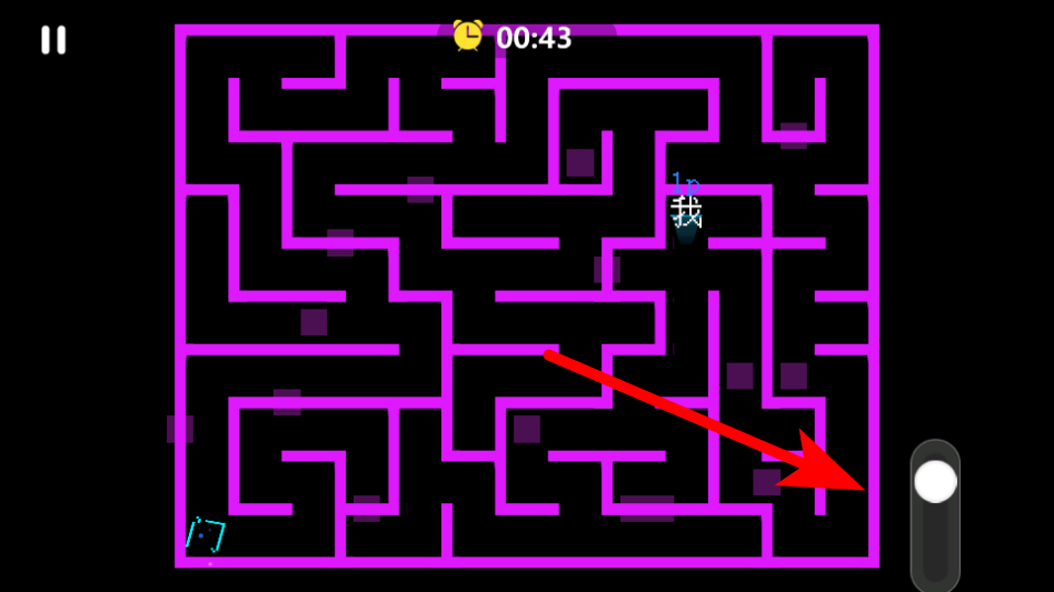 3、單人模式操作通過(guò)右側(cè)的控制按鈕如搖桿操控角色移動(dòng),在迷宮中尋找出口,完成關(guān)卡挑戰(zhàn)。