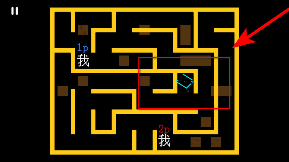 4、雙人模式玩法兩名玩家分別操控1p2p角色,在迷宮中協(xié)作探索,共同找到目標(biāo)區(qū)域如藍(lán)色出口以完成關(guān)卡。