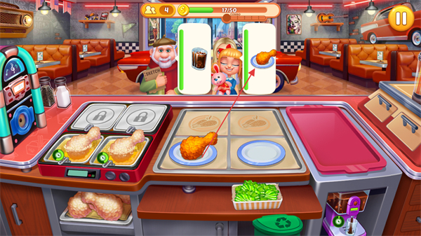 瘋狂廚師是一款經典的美食餐廳經營管理作品,采用美式卡通風格打造精致靚麗的畫面,食物造型逼真誘人,整體視覺效果充滿趣味性,核心圍繞餐廳經營與廚藝展示展開,不僅能打理專屬餐廳,還能解鎖更多門店、食材與廚具,需快速響應顧客需求,在短時間內獻上美味食物,憑借精湛廚藝吸引更多顧客,感受經營與烹飪結合的雙重樂趣。