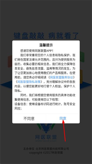 1、在使用協(xié)議隱私政策彈窗中點(diǎn)擊同意按鈕,進(jìn)入登錄頁面。