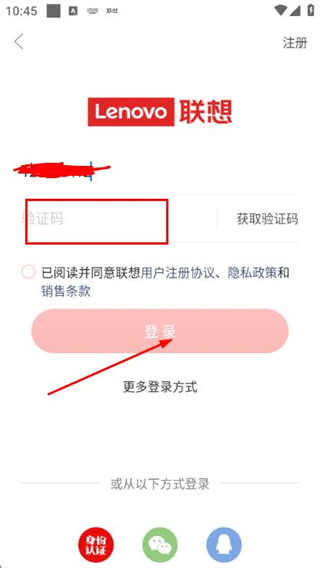 3、在驗(yàn)證碼輸入框中填寫收到的驗(yàn)證碼,點(diǎn)擊登錄完成賬號(hào)的登錄操作。