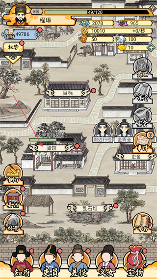 2、游戲主界面里,點擊驛館建筑,可進入對應界面開展結交等操作,以此提升知府的相關屬性。