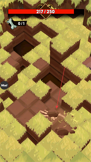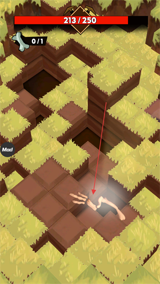 2、持續(xù)挖掘方塊靠近目標,血量隨操作消耗,逐步接近物品位置。