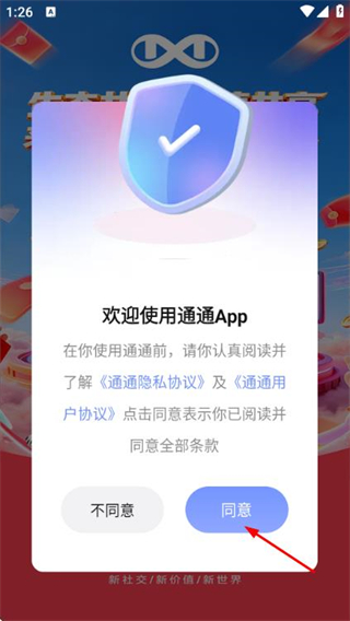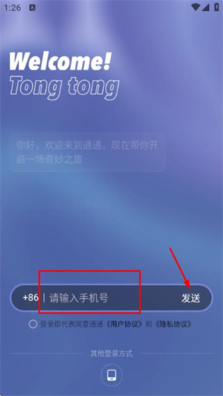 1、在使用協(xié)議隱私政策彈窗中點(diǎn)擊同意按鈕,進(jìn)入登錄頁面。