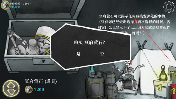 3、完成道具相關(guān)操作后,可以聽取骷髏店主所說的,了解道具的獲取背景以及作用效果。