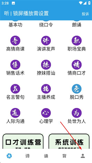 1、在說話聊天技巧與口才訓(xùn)練首頁,點(diǎn)擊底部的我選項(xiàng),進(jìn)入個(gè)人中心頁面。
