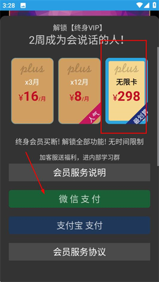 3、在會(huì)員購買頁面,選擇套餐后,點(diǎn)擊支付方式,即可充值vip。