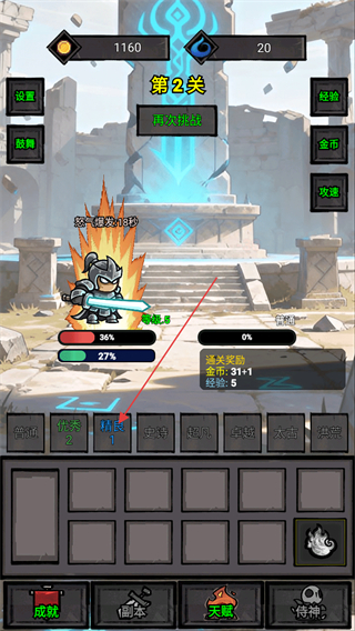 2、第2關(guān)戰(zhàn)斗中角色觸發(fā)怒氣爆發(fā),選擇界面里的精良品質(zhì)道具,可提升自身戰(zhàn)力,幫助更快擊敗敵方推進關(guān)卡進程。