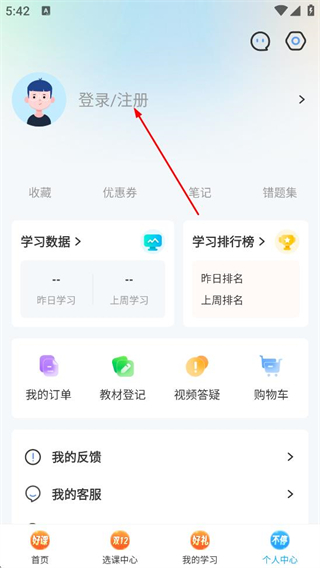 2、在個人中心頁面,點擊登錄/注冊選項,進入登錄選擇頁面。
