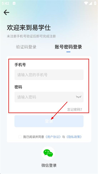 4、在賬號密碼登錄頁面,填寫手機號與密碼,點擊登錄,完成賬號登錄。
