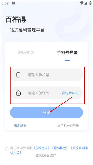 3、在手機(jī)號(hào)登錄頁(yè)面,填寫手機(jī)號(hào)、驗(yàn)證碼,點(diǎn)擊登錄,完成賬號(hào)登錄。