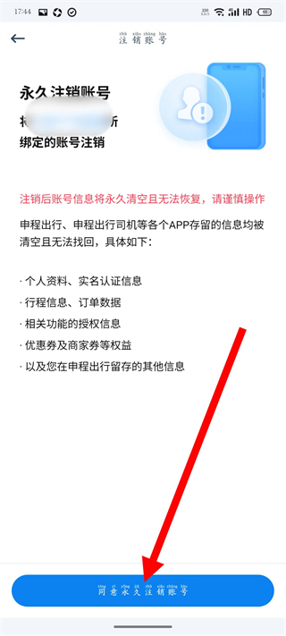 5、在確認(rèn)頁面,點擊同意永久注銷賬號,完成賬號注銷。