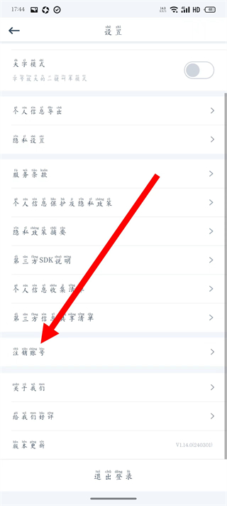 3、在設(shè)置頁面,點擊注銷賬號,進入注銷原因選擇頁面。