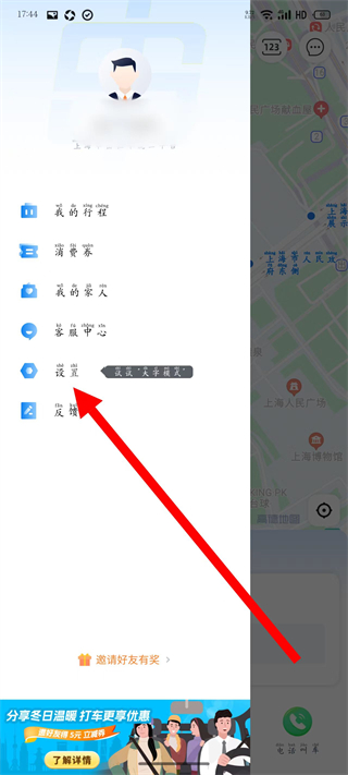 1、打開申程出行,點擊左上角的個人圖標(biāo)展開側(cè)邊欄。
