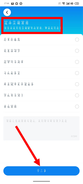 4、選擇注銷原因后,點擊下一步,進入確認(rèn)頁面