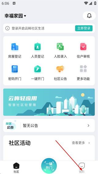 2、在社區(qū)首頁,點擊底部導航欄的我的,進入個人頁面。