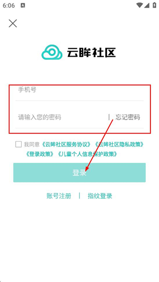 4、在賬號登錄頁面,填寫手機號與密碼,點擊登錄,完成賬號登錄。