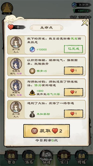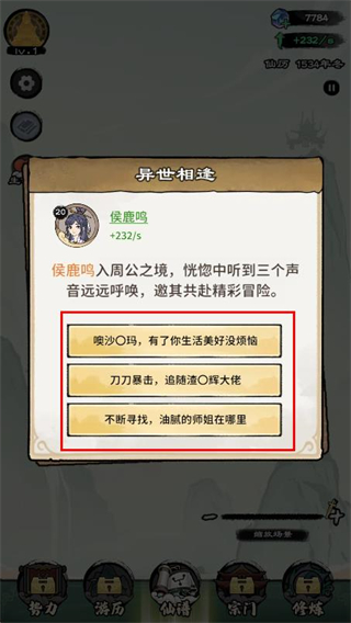 3、劇情包含不同分支,每個(gè)選項(xiàng)對(duì)應(yīng)不同的修仙機(jī)緣,體驗(yàn)不一樣的劇情。