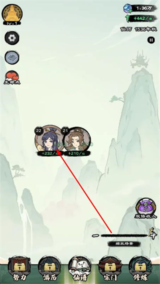 3、在修仙場(chǎng)景中,點(diǎn)擊需要查看屬性的人物頭像,即可彈出屬性面板。