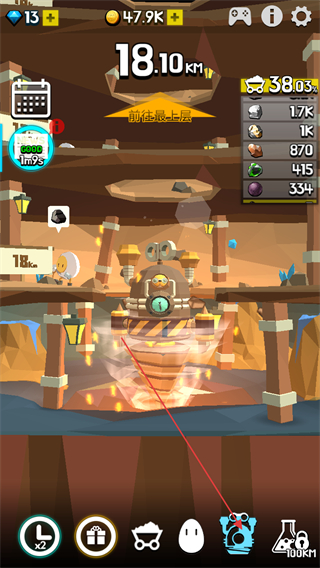 4、利用獎勵資源繼續(xù)升級鉆頭、機(jī)體等部件,提升挖掘效率,推進(jìn)更深地層的挖掘。
