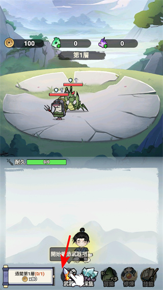 1、在戰(zhàn)斗界面,點擊武器按鈕可進入裝備配置界面,這是提升角色戰(zhàn)力的核心操作,后續(xù)可通過解鎖武器欄、裝配武器強化戰(zhàn)斗能力。