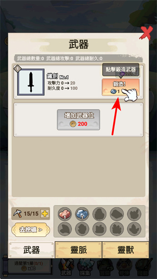 3、解鎖武器位后,點擊購買可獲取基礎(chǔ)武器如長劍,該武器會直接提升角色的屬性如攻擊、耐久,強化其在戰(zhàn)斗中的輸出與生存能力。