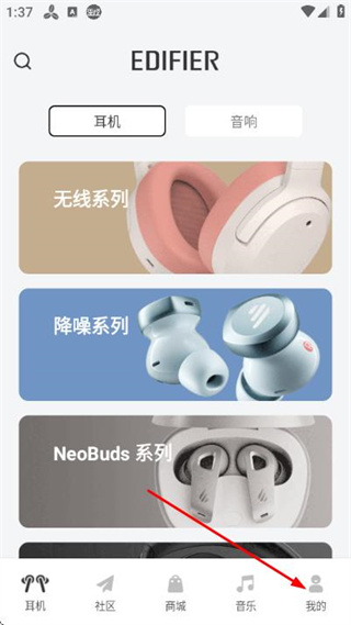 1、在EDIFIER頁面點擊底部我的,進入個人頁面。