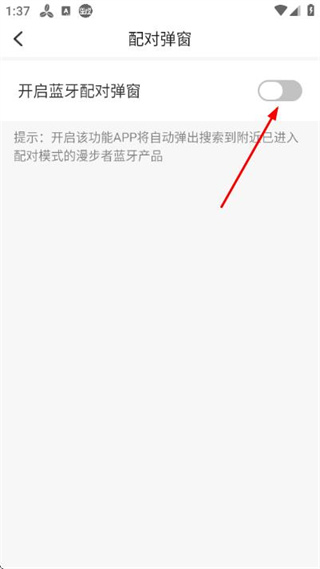 3、在配對彈窗頁面點擊開啟藍牙配對彈窗對應的開關(guān),開啟該功能。