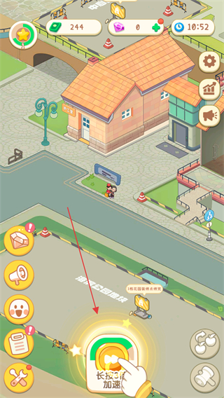 1、點(diǎn)擊界面中的金幣按鈕或長按加速,積累綠色貨幣如體力值。