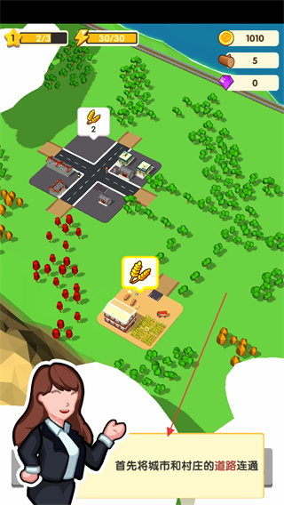 1、根據(jù)提示首先將城市和村莊的道路連通,明確游戲初始目標(biāo)是連接城市與村莊的道路。