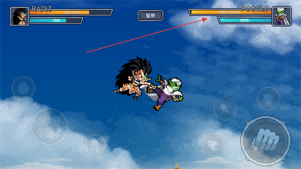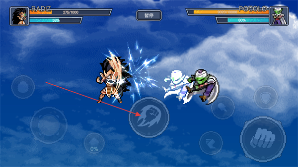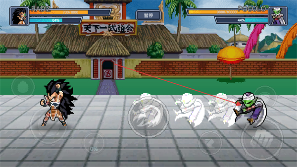 1、在天下一武道會(huì)場(chǎng)景,操控角色釋放技能,對(duì)敵方POCOLO造成傷害。