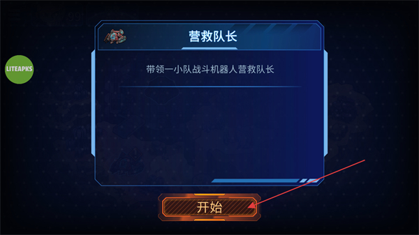 1、在營救隊長關(guān)卡界面,點擊開始,開啟帶領(lǐng)戰(zhàn)斗機器人營救隊長的任務(wù)。