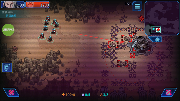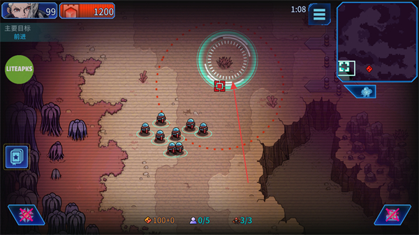 2、操控戰(zhàn)斗機器人隊伍,沿地圖路徑移動,靠近目標區(qū)域推進營救進程。