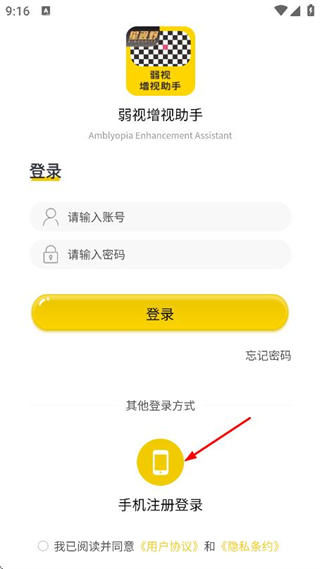 1、在登錄頁面點擊手機注冊登錄,進(jìn)入注冊賬號頁面。