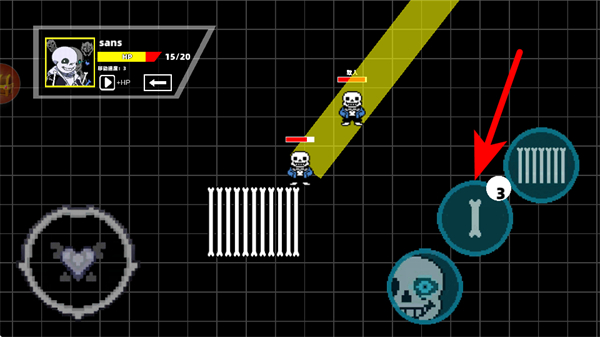 2、在戰(zhàn)斗場景中,點擊右側帶有3標識的骨頭道具,這是選擇戰(zhàn)斗道具的核心操作,選定后可準備對敵人發(fā)起攻擊。