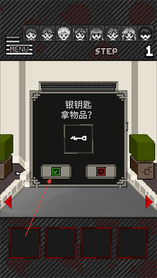 1、在當前界面出現(xiàn)銀鑰匙物品的提示時,點擊綠色對勾樣式的確認按鈕,即可獲取該銀鑰匙道具用于后續(xù)的關(guān)卡互動。